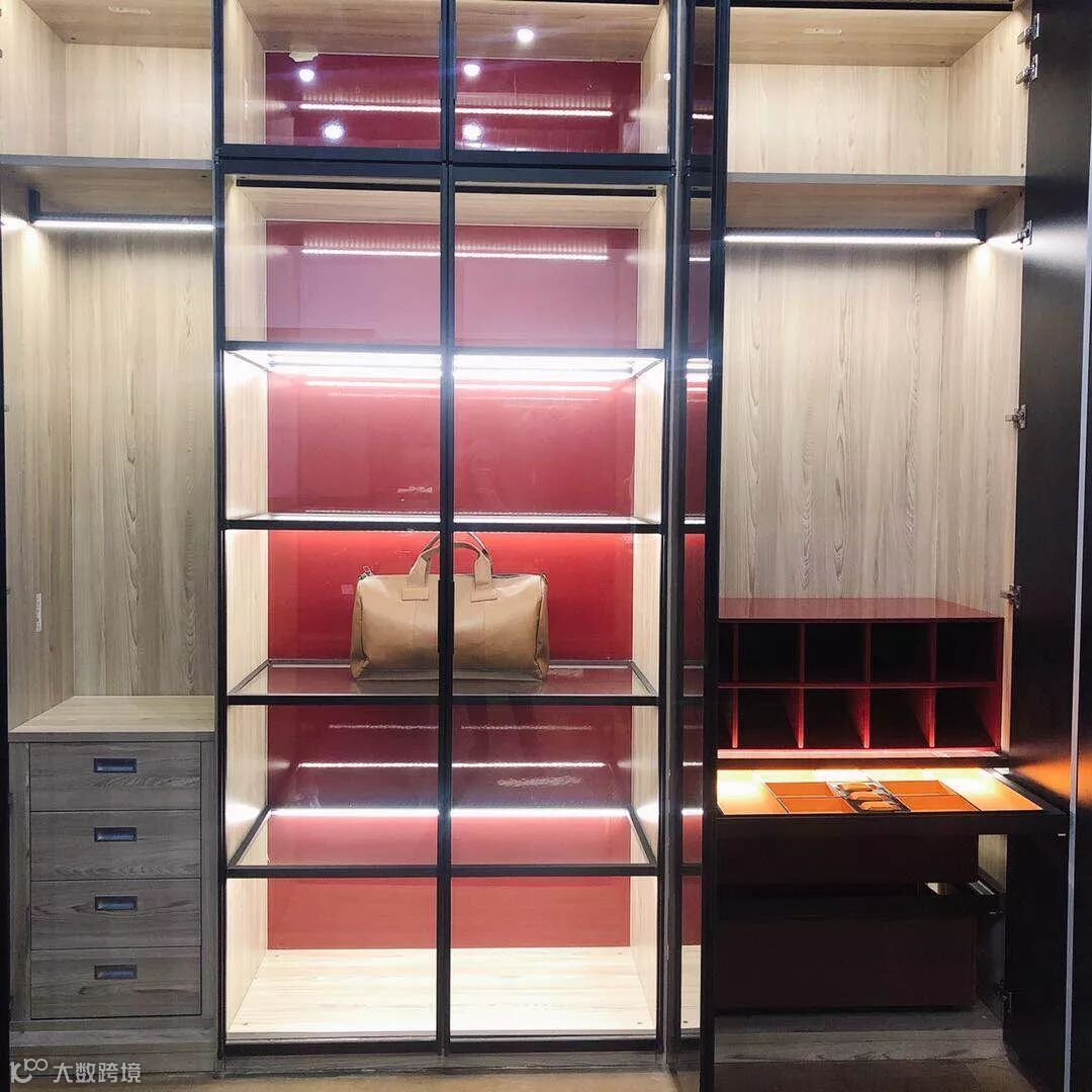 酷炫的自动感应灯光内嵌在橱柜每一层的层板内,随着人走动感应自发光。