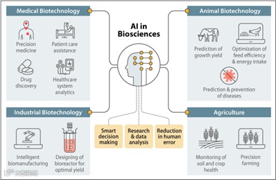 人工智能与生物科学融合的应用领域示例(图源:CRS.org)