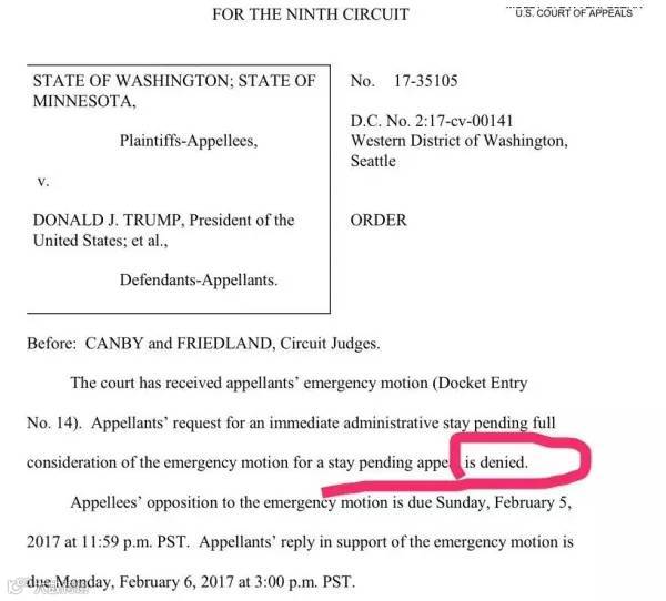 嘚瑟了没几天,川普又被刺激了,联邦法庭宣布废除总统禁令。