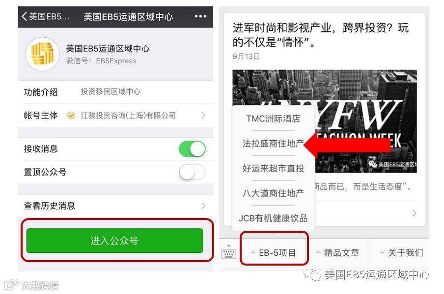 或找到子菜单EB-5项目点击进入第二个项目查阅
