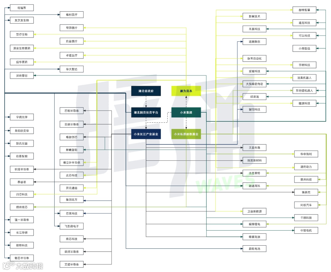 以小米为基点展开,其生态布局充分表明了产投生态的错综复杂。可以观察到,小米长江产业基金更侧重半导体与新能源等科技制造业;小米私募股权基金则更关注对新能源产业汽车的布局(小米此前宣布了造车);而作为完全独立募资的顺为资本,对小米也十分关心的工业和家用级机器人也有涉猎,但相比之下,顺为还投资医疗、消费、互联网等,其涉猎更为广泛。同时,小米系基金,也与雷军老家湖北省的相关政府合作颇多,小米长江产业基金被视为龙头企业与地方政府合作的典范。