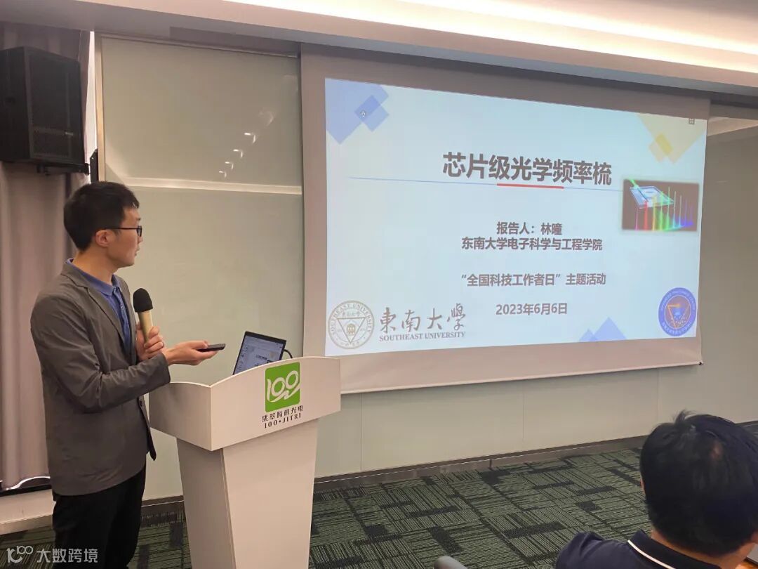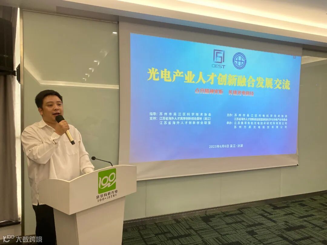 在光电产业人才创新融合交流环节,特别邀请了东南大学电子科学与工程学院副研究员、集成电路学院双聘副研究员、江苏省双创博士、南京海智湾青年留学人才、江苏省海外人才创新创业联盟通信科学与光电产业专委会副秘书长林曈,苏州中关村信息谷创新中心黄隽轶副总经理,江苏集萃光电检测中心殷尧副主任,现场作了专题交流分享。