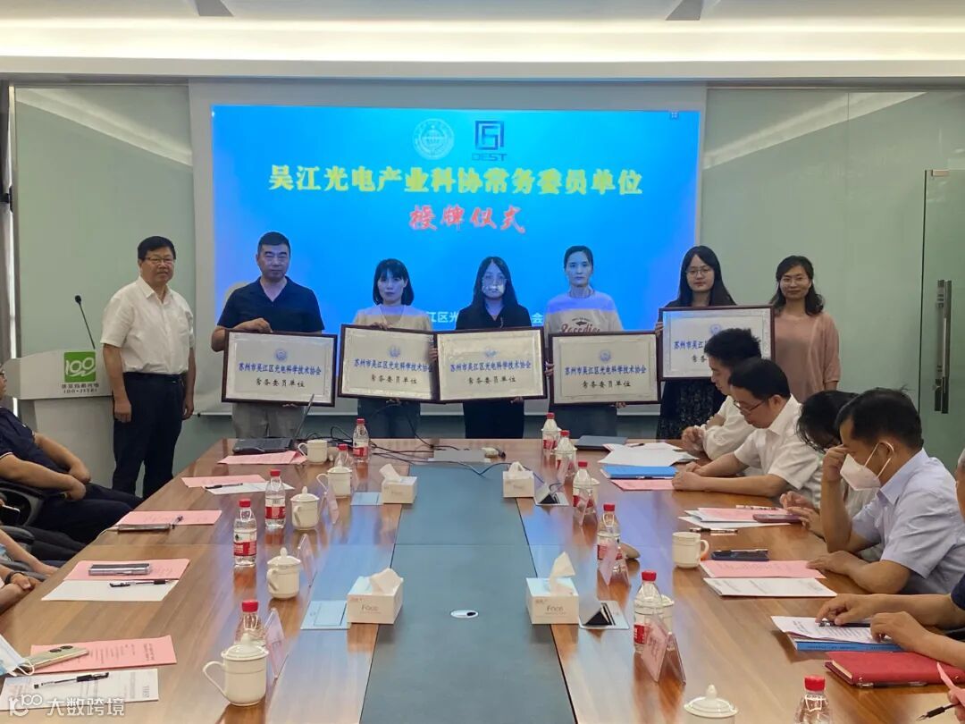 吴江区科协党组书记/主席孟庆利、副主席陶荣芳,汾湖经济开发区经济发展局汝百慧科长,东南大学电子科学与工程学院副研究员林曈,苏州中关村信息谷创新中心副总经理黄隽轶,苏州方昇光电股份有限公司董事长刘俊文,江苏集萃有机光电技术研究所副所长樊健,吴江光电产业科协常务副主席宋继恩、副主席韦祖国等出席。来自苏州市吴江区光电科学技术协会(吴江光电产业科协)的副主席、常务委员单位,以及产业科技工作者代表等40余人参加。