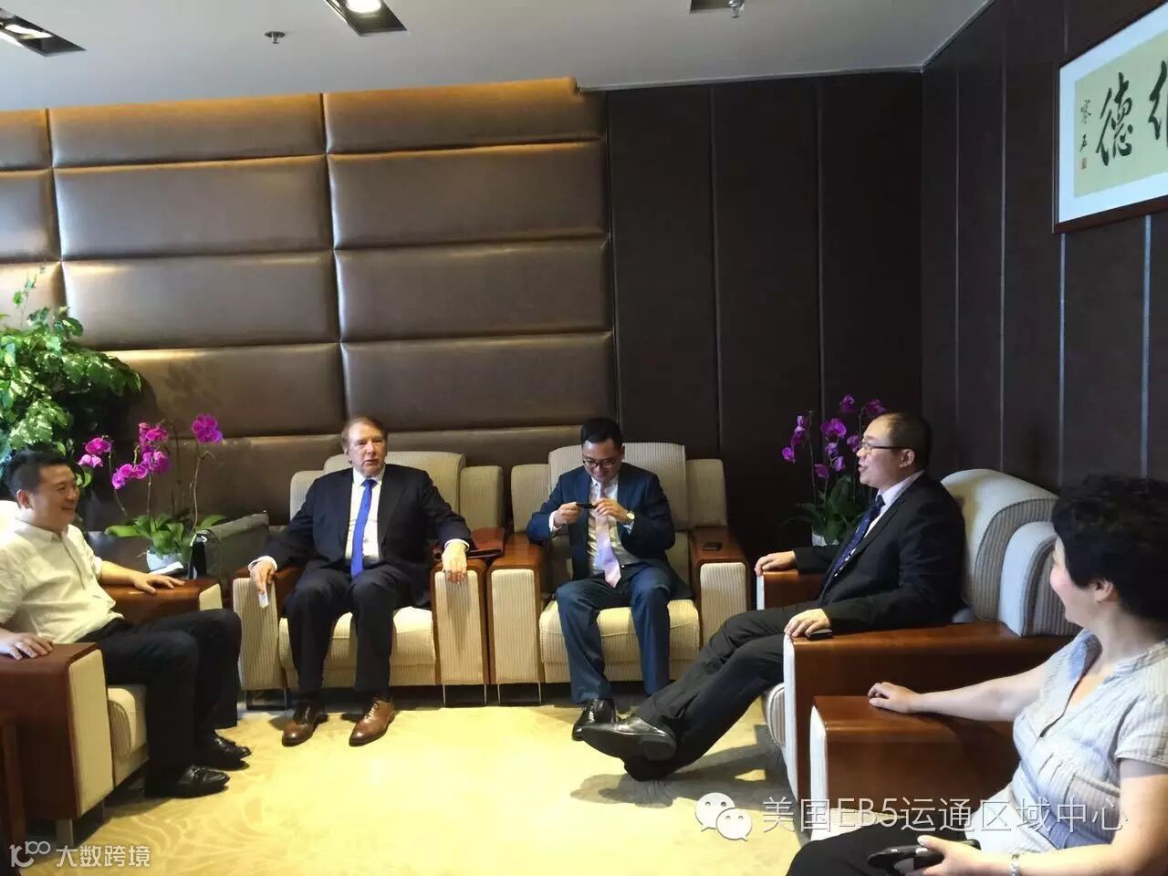 美国EB5运通区域中心CEO 赵江城先生(Brain Zhao)(右二)与美国太平洋律师事务所大律师Gene M.Burke(左二)向四川全兴律师事务所介绍公司项目。