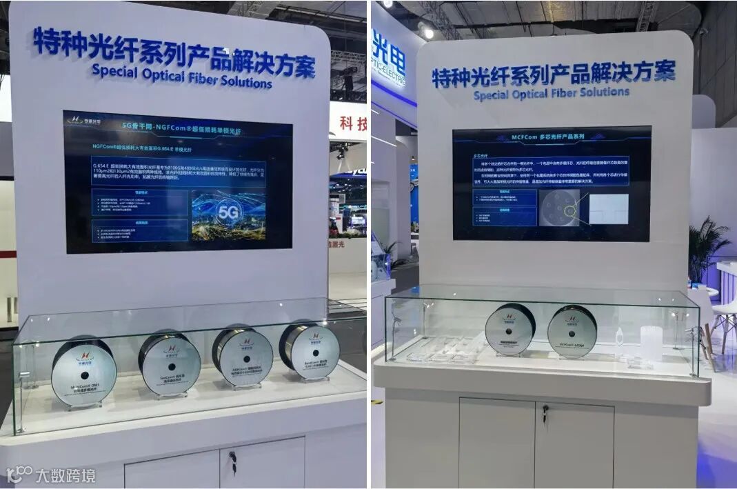 亨通光电本次展出的特种光纤产品主要包括超低损耗大有效面积G.654E光纤、海洋光纤、数据中心领域应用的OM4、OM5系列多模光纤,以及面向空分复用的多芯光纤等系列产品。在光纤激光器应用领域,展出了有源光纤和无源光纤,以稳定的高能量传输助力智能先进制造。此外,本届展会亨通光电还展示了高纯石英产品,获得行业高度关注。