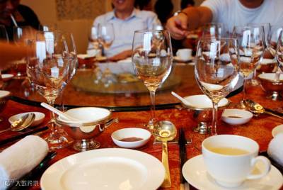 美国人还有一点与欧洲人不同,他们吃面包从来不用餐叉和餐刀。他们先把面包切开,用手将面包送进口中。在美国出席正式晚餐会,你会发现满桌子都是餐刀、餐叉和汤匙,它会搞得你眼花缭乱。不过不用担心,只要按摆放顺序从盘子远端向近端逐个拿就是了。放在左边的小餐叉是吃沙拉用的。放在右边的汤匙是用来喝汤的。桌上有一把小餐刀,叫黄油刀,放在盛黄油的盘子上方或放在面包盘的左边。当面包从客人手中传过来的时候,你可以取一片面包放在自己的盘子上。挨着汤匙的是一把钝刀,是用来切割鱼肉或切割鸡肉的。在饭桌上有条不紊地使用这些餐刀、餐叉和汤匙,会使你显得有修养。