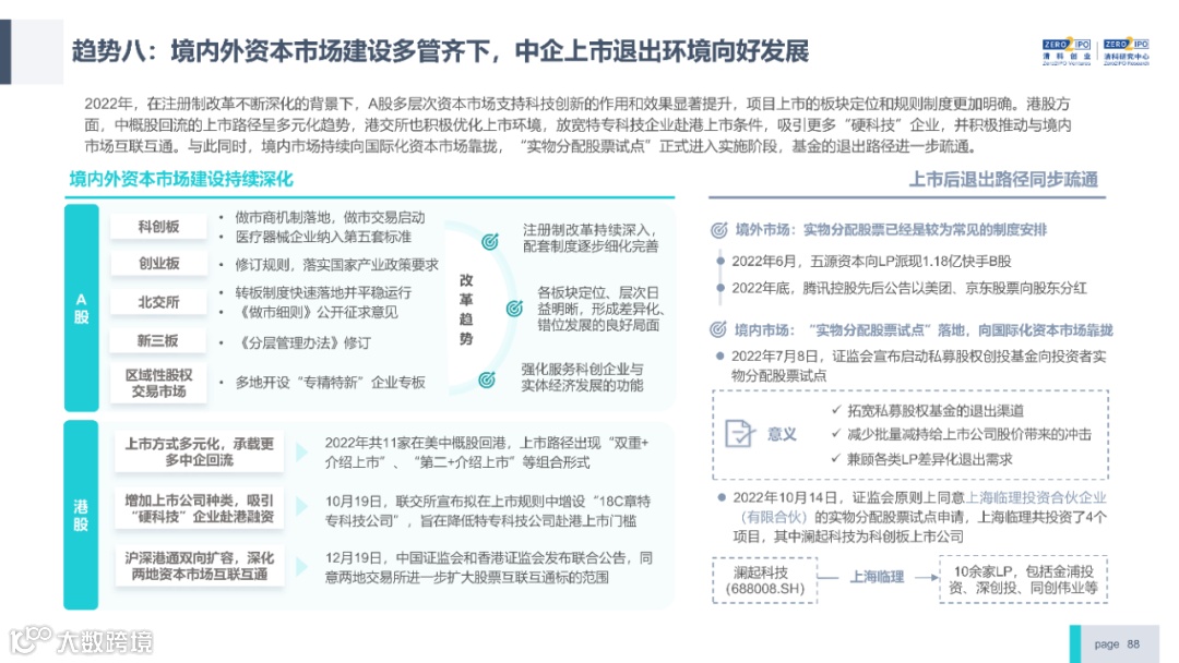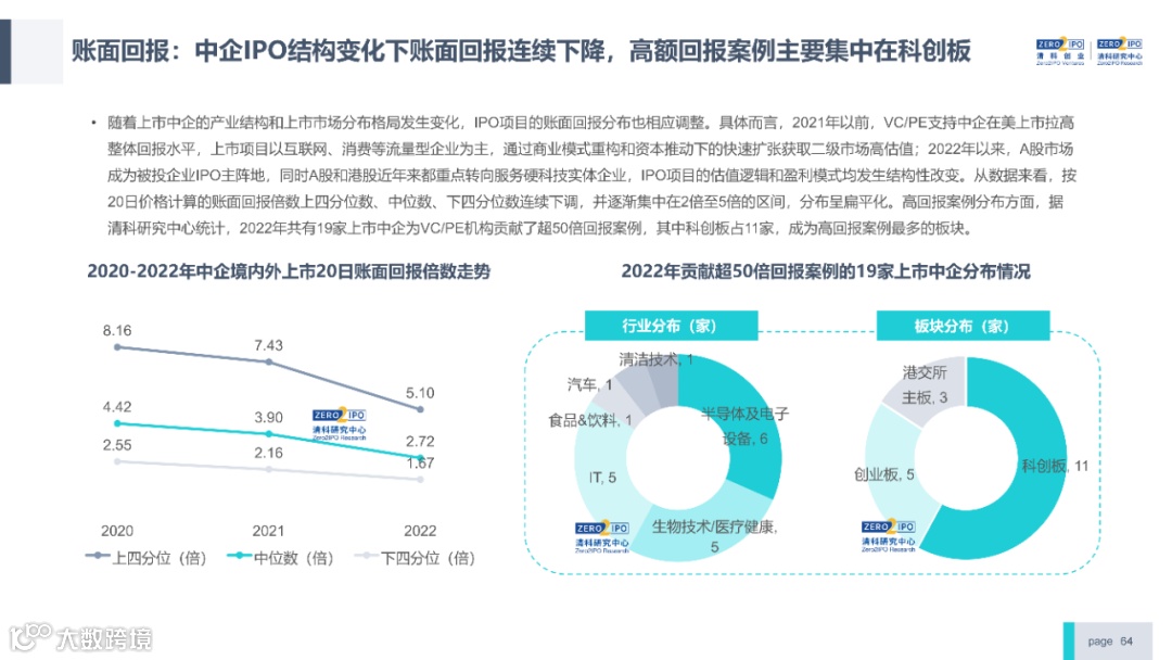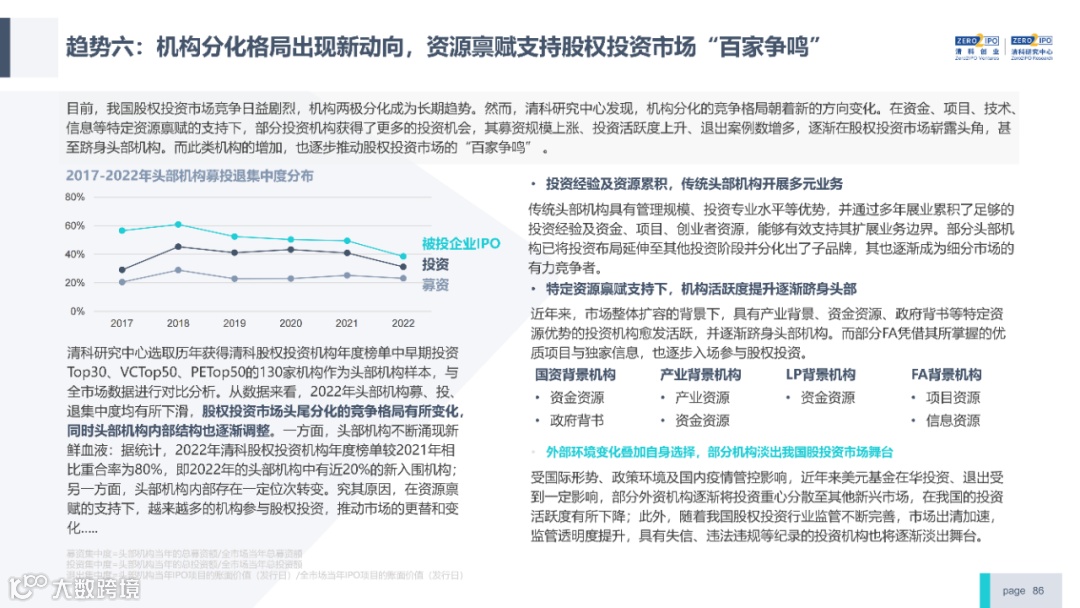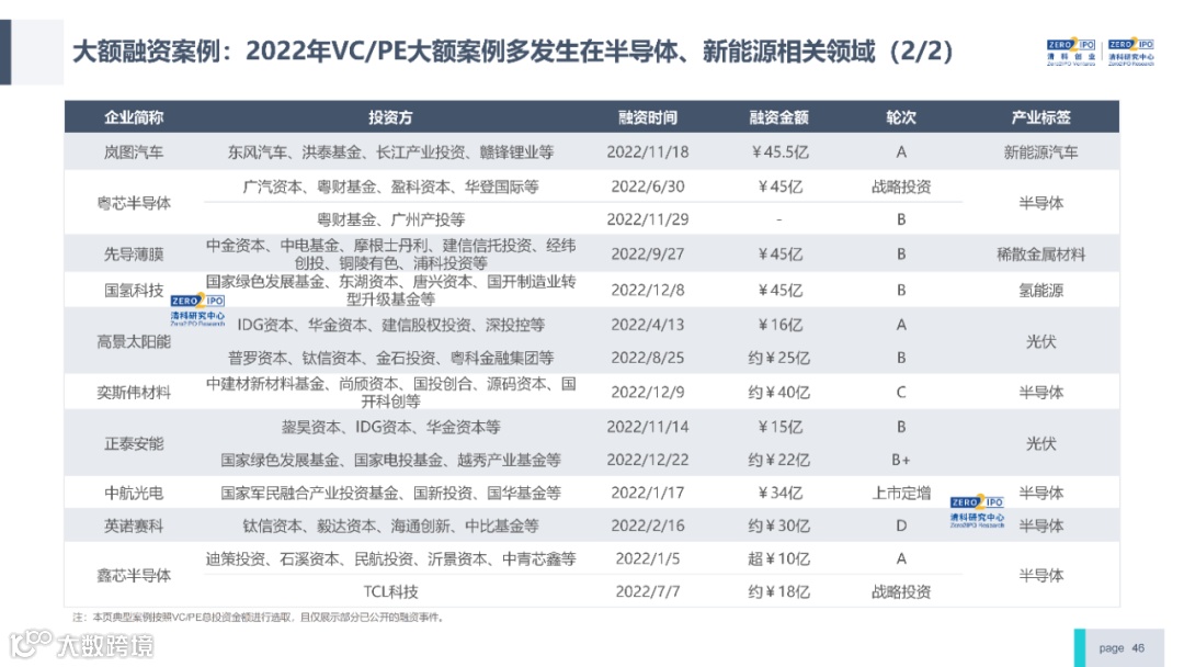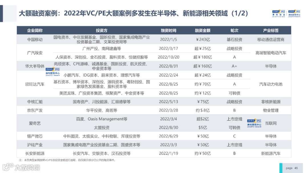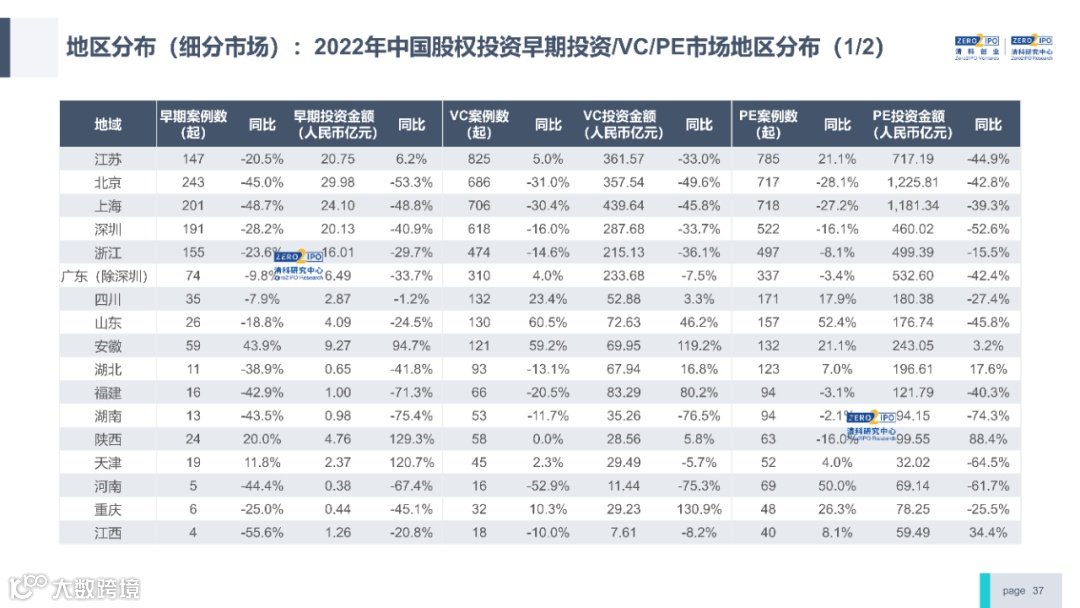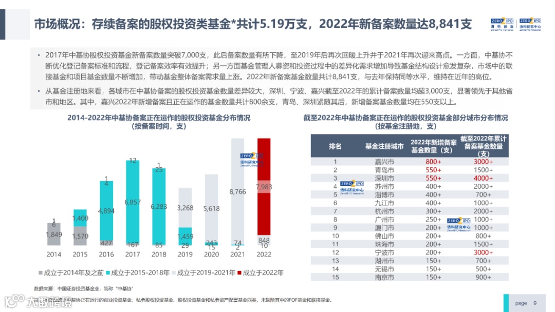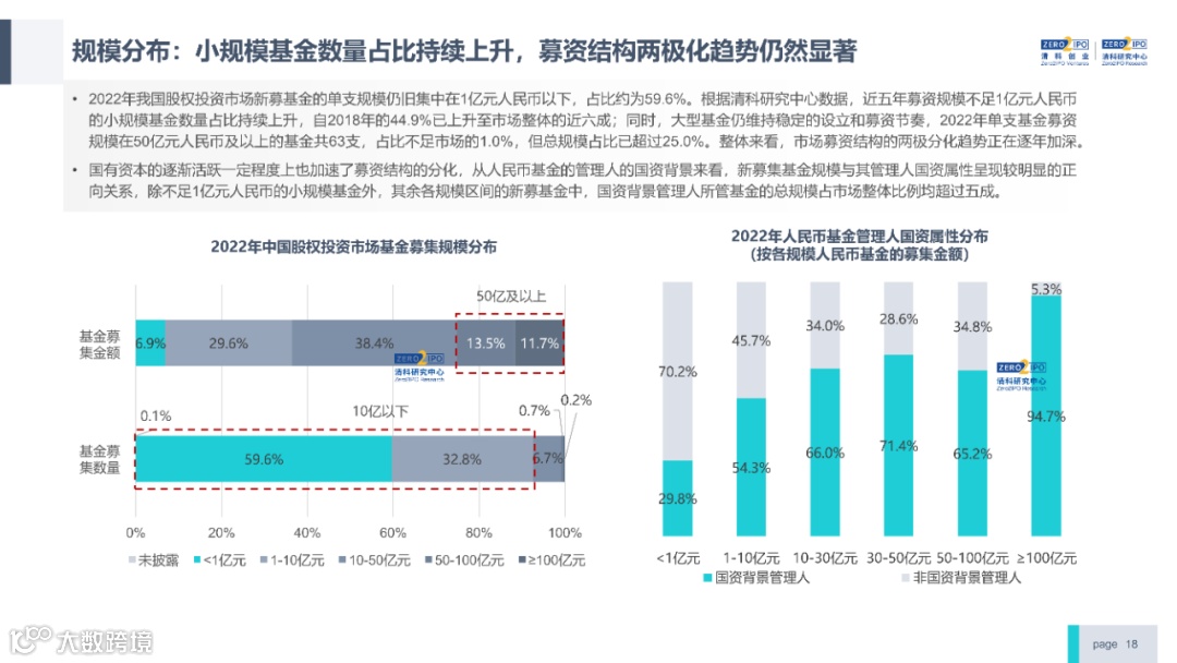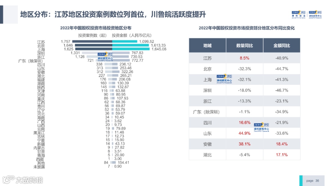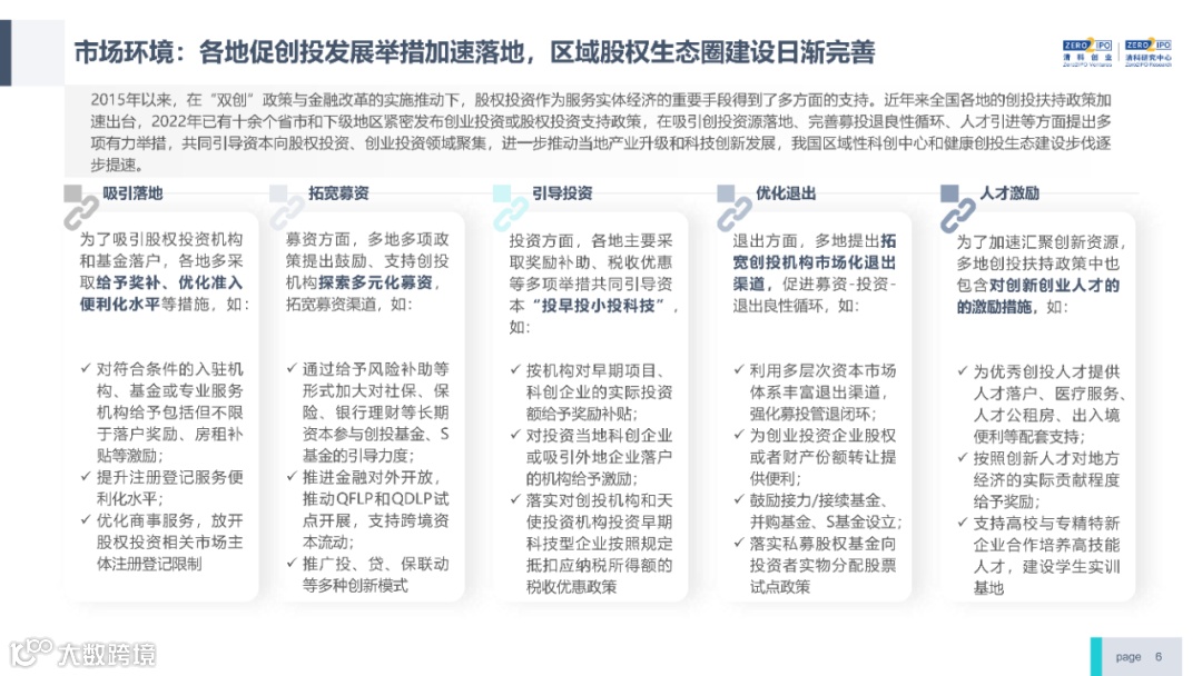 2022年中国股权投资市场外部承压、内部求变,各市场在优化调整中延续高质量发展态势。其中,募资总量维持稳定,新募基金数量达7,061支,同比小幅提升;在国有资本股权投资参与度加深、新基建加速布局的背景下,大型政策性基金、基础设施投资基金集中设立,推动市场募资规模维持高位。投资节奏趋缓,2022年共发生10,650起投资案例,涉及金额9,076.79亿元,同比分别下滑13.6%、36.2%;硬科技投资成为市场主导,半导体、新能源和汽车等行业投资总量逆势上涨。退出案例数为4,365笔,同比小幅下降3.7%,被投企业IPO数量及占比同步减少,并购、股转和回购的交易热度明显提升;随着IPO项目溢价逐步降低和上市不确定性持续增加,VC/PE机构也开始调整退出策略,积极采用更加灵活、多样的退出方式以获取现金收益。而随着股权投资市场的不断调整,市场环境的优化、投资机构的进化、投资策略的细化等也将成为未来市场的主要发展趋势。更多股权投资市场前瞻解读,点击阅读原文,下载《2022年中国股权投资市场研究报告(完整版)》。