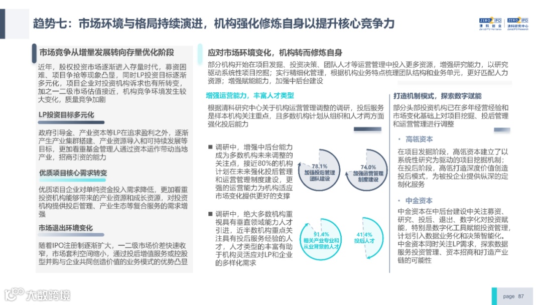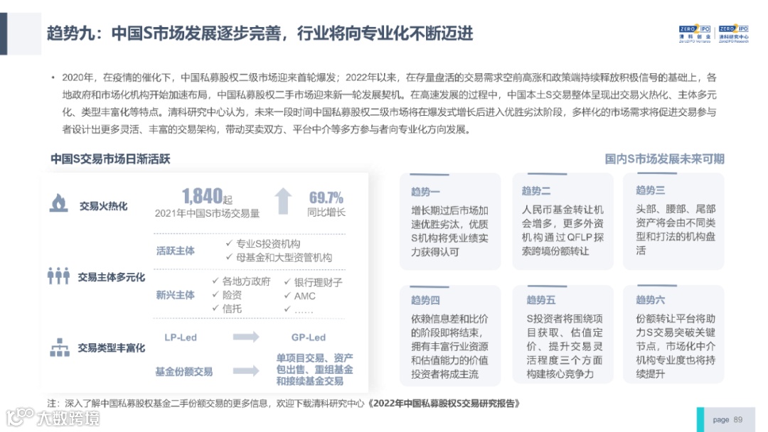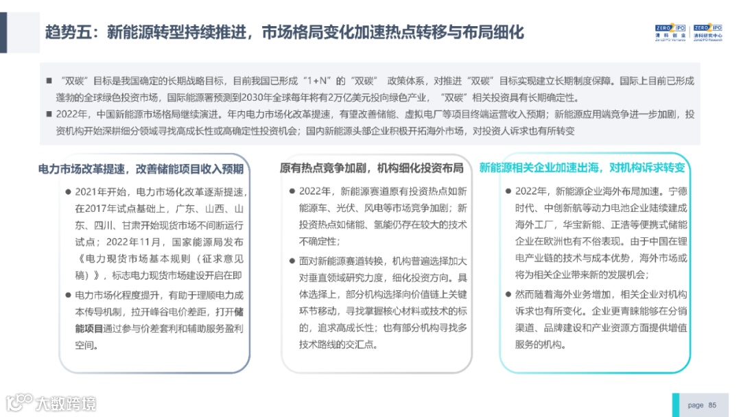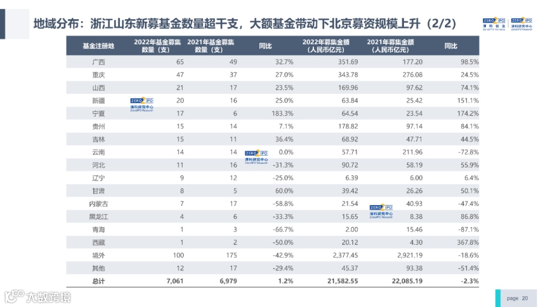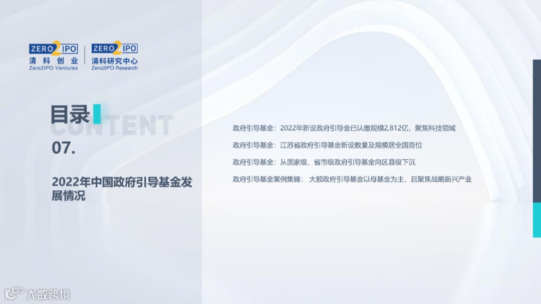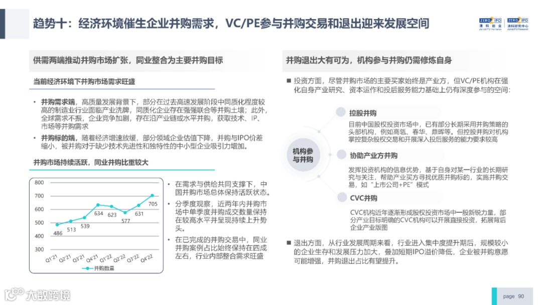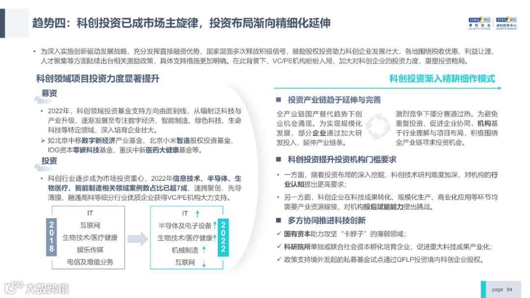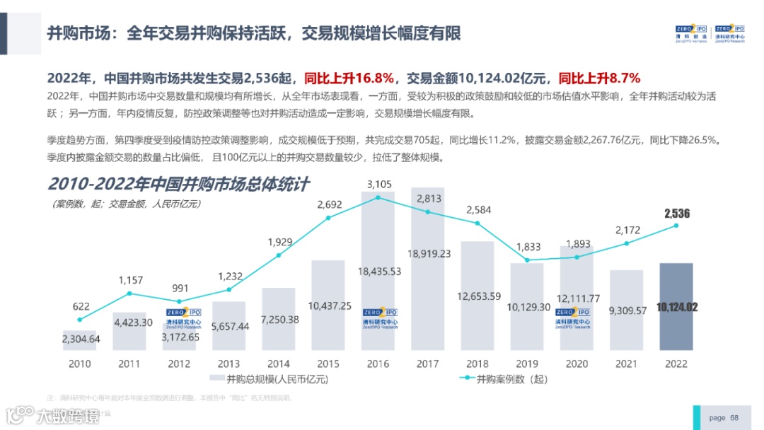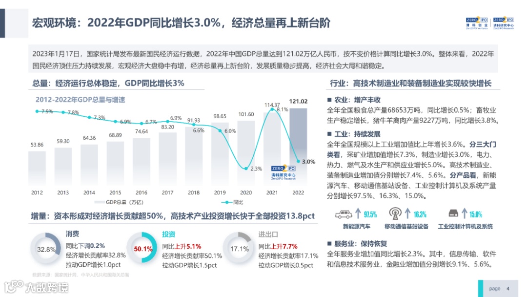 2022年中国股权投资市场外部承压、内部求变,各市场在优化调整中延续高质量发展态势。其中,募资总量维持稳定,新募基金数量达7,061支,同比小幅提升;在国有资本股权投资参与度加深、新基建加速布局的背景下,大型政策性基金、基础设施投资基金集中设立,推动市场募资规模维持高位。投资节奏趋缓,2022年共发生10,650起投资案例,涉及金额9,076.79亿元,同比分别下滑13.6%、36.2%;硬科技投资成为市场主导,半导体、新能源和汽车等行业投资总量逆势上涨。退出案例数为4,365笔,同比小幅下降3.7%,被投企业IPO数量及占比同步减少,并购、股转和回购的交易热度明显提升;随着IPO项目溢价逐步降低和上市不确定性持续增加,VC/PE机构也开始调整退出策略,积极采用更加灵活、多样的退出方式以获取现金收益。而随着股权投资市场的不断调整,市场环境的优化、投资机构的进化、投资策略的细化等也将成为未来市场的主要发展趋势。更多股权投资市场前瞻解读,点击阅读原文,下载《2022年中国股权投资市场研究报告(完整版)》。
