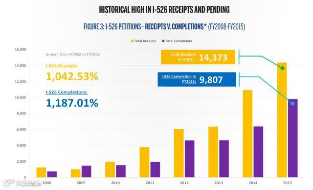 IIUSA,EB-5行业协会,在最近出版的2016年春季刊上,发布了一组EB-5的统计大数据。我们就通过这组图表,来详细解读EB-5历史数据。