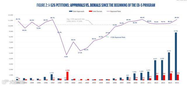 图二:I-526获批通过率历史(获批数 vs 被拒数)