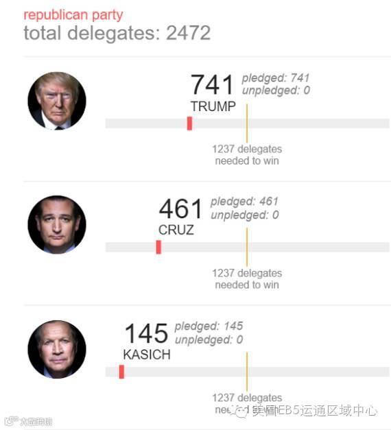 先来看看(3.22)之后的共和党初选总统候选人的支持率状况,川普的支持流程遥遥领先。顺便提一句,面对川普这么无厘头的竞争者,科鲁兹已经退选了。