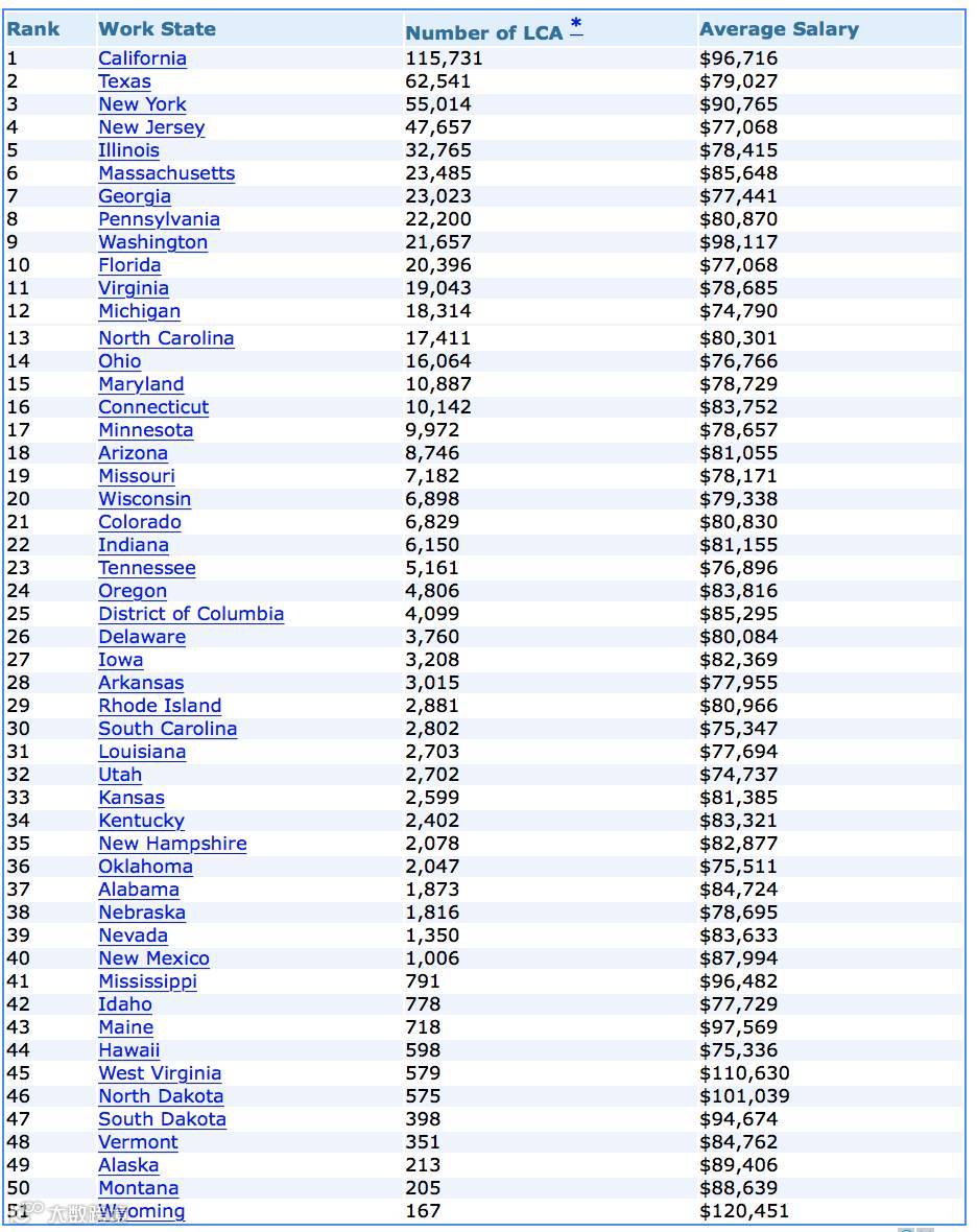 我把H1B申请各州分部及城市排行放在一起,跟大家来分享。