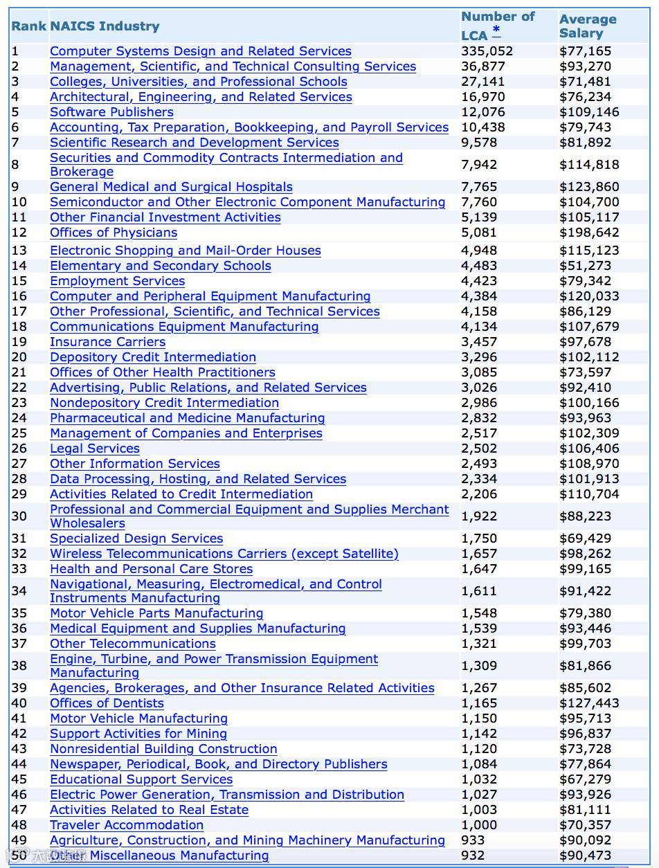 行业,比专业更加宏观的一个概念,不同的专业最终都汇聚到了同一个行业。当然,这些行业不要误认为是美国最好的行业哦,相反,这恰恰反映美国国际雇工行业或者说是大众行业吧,美国最好的行业肯定还是本土精英们向往的金融相关,风投,企业管理等等。