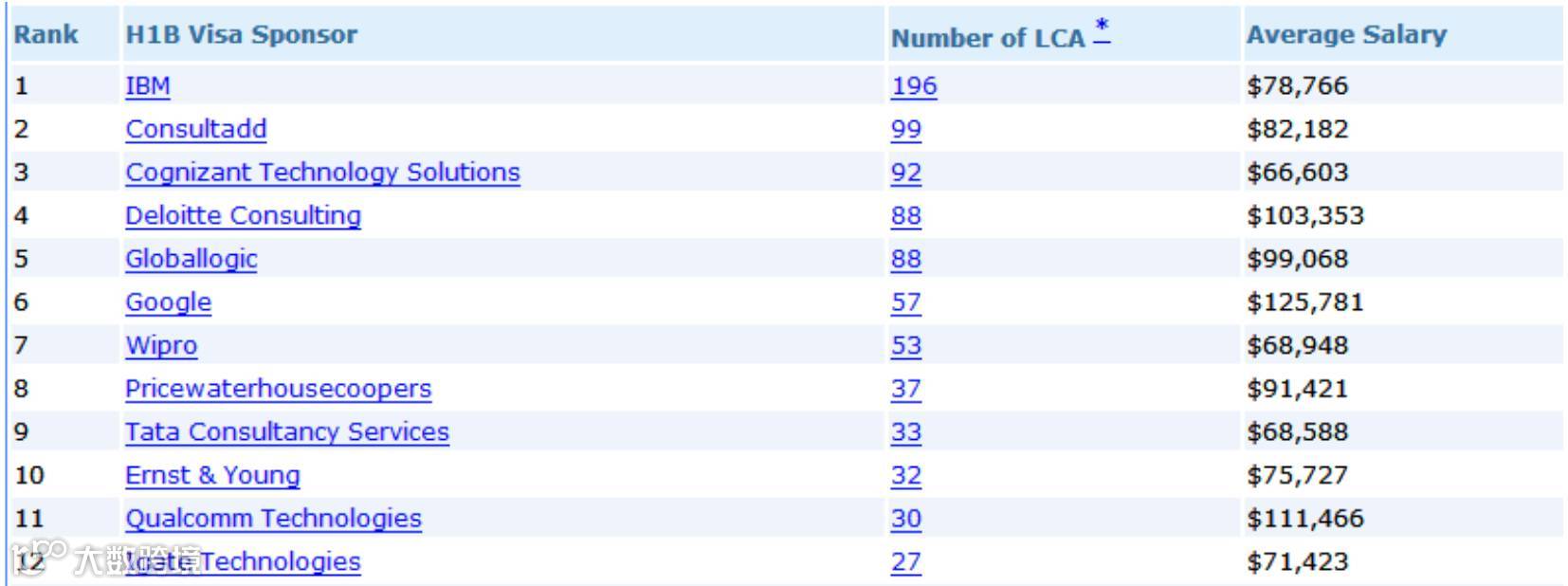 在劳工部第一步筛查,去掉一部分不合格的申请者,这些人就没有了继续申请美国H1B工作的机会啦,有心人可以发现有些公司跟上面个别公司重名,尤其是IBM,13600多个申请人中超过10%的不合格,看来雇主公司也有不小的问题呢。