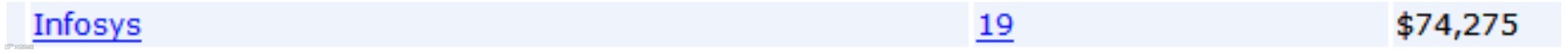 Infosys还是最牛,申请人最多,最起码在退回排名中不在前12名,或者根据这个退回榜说退回来的人少于90人哦,为了这个话题,花了点时间去求证下Infosys的退回人数是19人,排在靠近100位了,好单位。