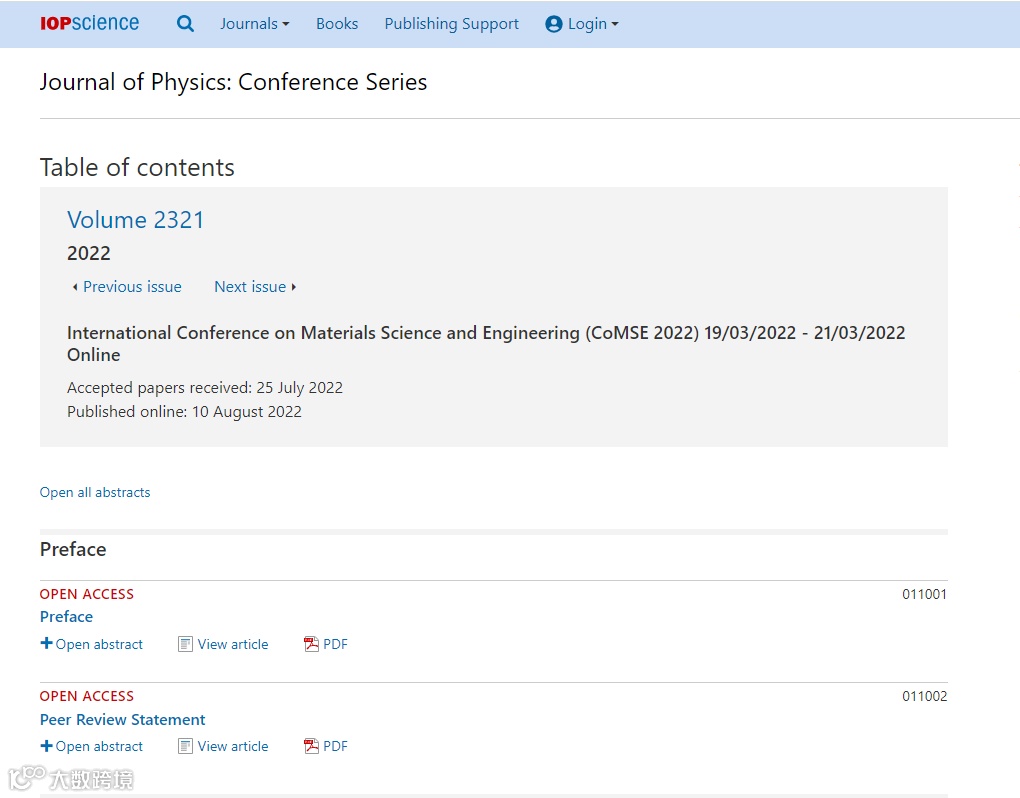 出版链接:https://iopscience.iop.org/issue/1742-6596/2321/1