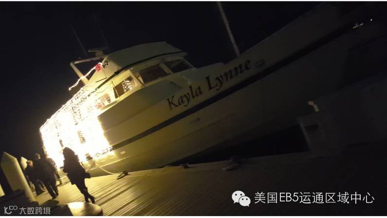 通过游艇顶部看到美丽的圣诞装饰。