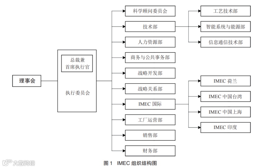 IMEC理事会下设执行委员会负责具体管理工作,执行委员会共有8名委员,均有理事会任命,相对稳定,30年来只经任了3位总裁。IMEC具体业务部门随研究方向调整而频繁变动,由IMEC国际负责监管全球各中心,在同一框架内协调各分中心共享科技资源和技术成果。