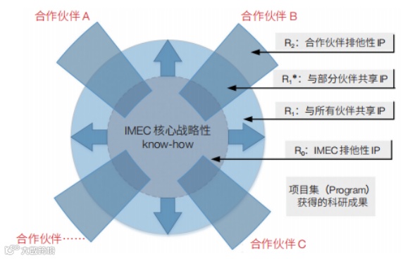 由于项目参与方可能存在竞争关系,IMEC 与各公司签署协议时,充分考虑了未来知识产权的归属问题。产业联合项目将知识产权分为 R0、R1、R2 三类,实施相应的规则: