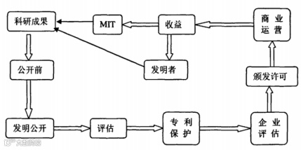美国麻省理工学院(MIT)内部设有技术转移工作的技术授权办公室(Technology Licensing Office,MIT-TLO),负责MIT校内从发明披露、技术评估、专利保护、到最终商业价值转化的典型大学技术转移流程。