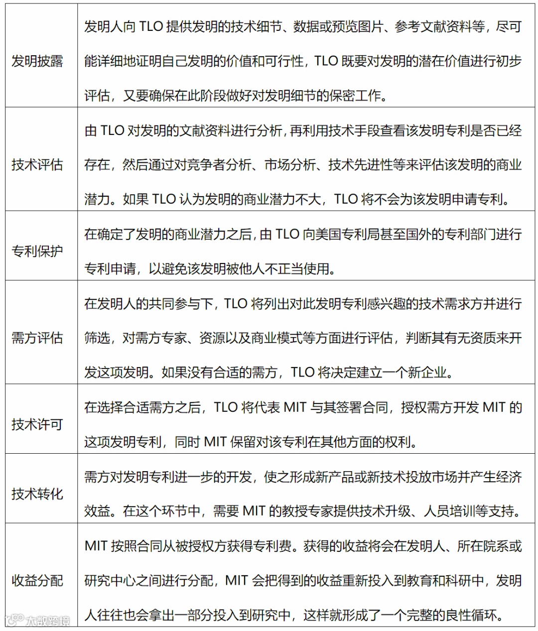 表1. 麻省理工学院(MIT)大学技术转移流程