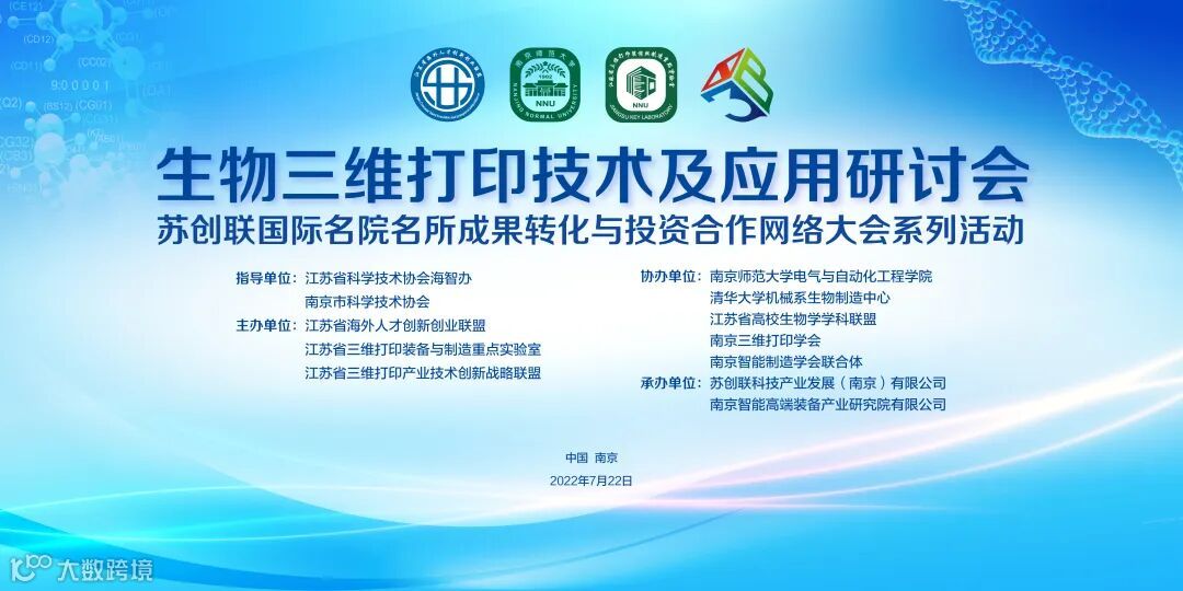 7月22日,生物三维打印技术及应用研讨会--苏创联国际名院名所成果转化与投资合作网络大会系列活动在南京师范大学仙林宾馆隆重召开。研讨会活动由江苏省海外人才创新创业联盟、江苏省三维打印装备与制造重点实验室、江苏省三维打印产业技术创新战略联盟等三家单位联合主办。