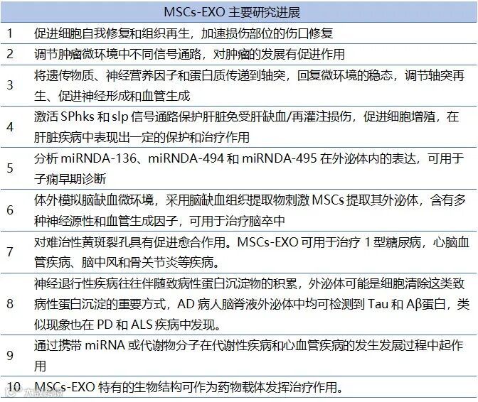 表4:MSCs-Exo主要研究进展