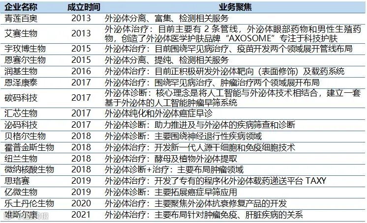 外泌体相关企业