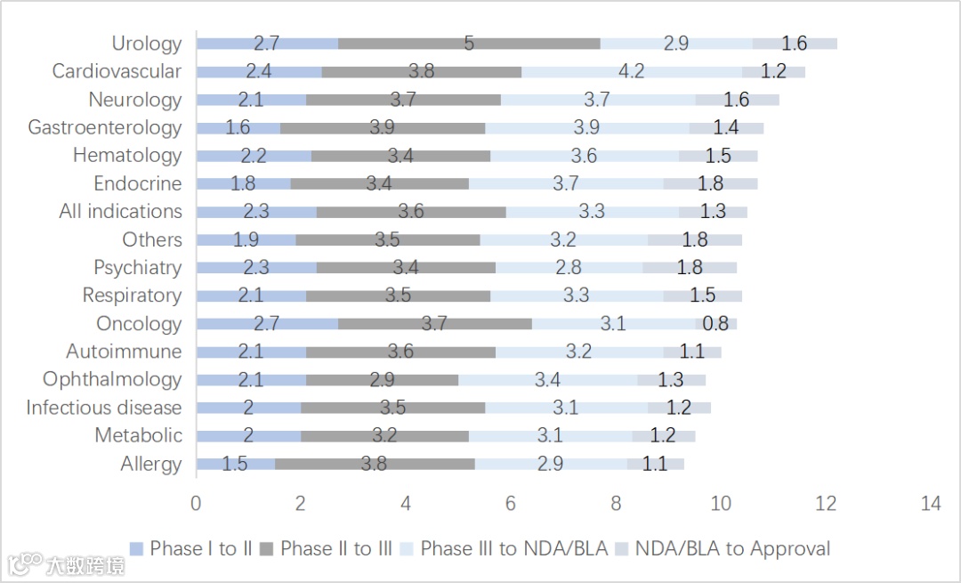图8:各临床阶段研发时间周期(年)