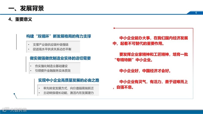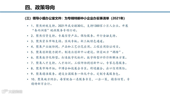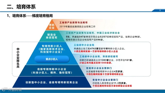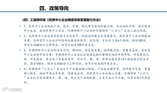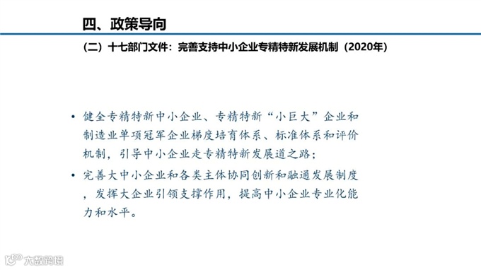 周平军主任从“发展背景、培育体系、培育现状、政策取向”四方面展开解读,他表示制造强国战略进一步提升“专精特新“中小企业在国民经济中的战略地位,“十四五”时期更加重视“专精特新”中小企业发展。