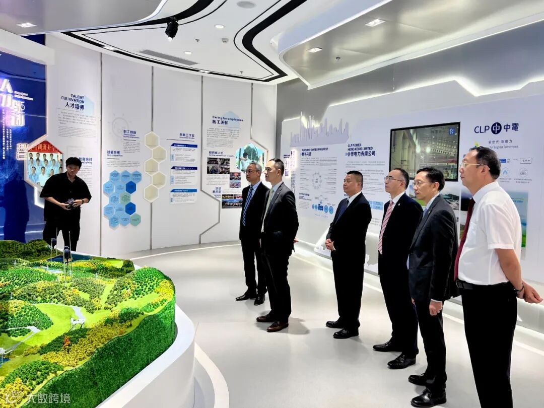 中华电力总裁罗嘉进先生(右五)与一众嘉宾参观厂区内的企业文化馆,了解广州抽水蓄能电站的历史文化,以及其安全管理建设成果