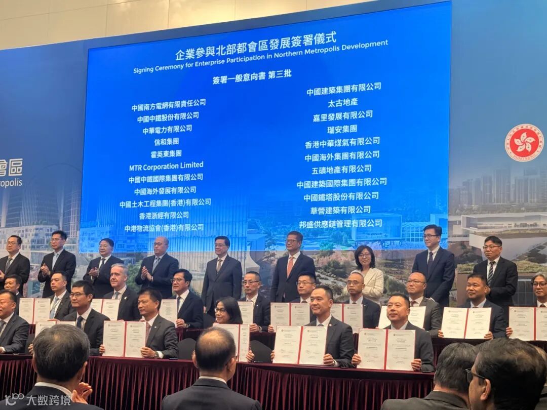 中华电力总裁罗嘉进先生(前排右二)签署参与北部都会区发展意向书及项目参与书。