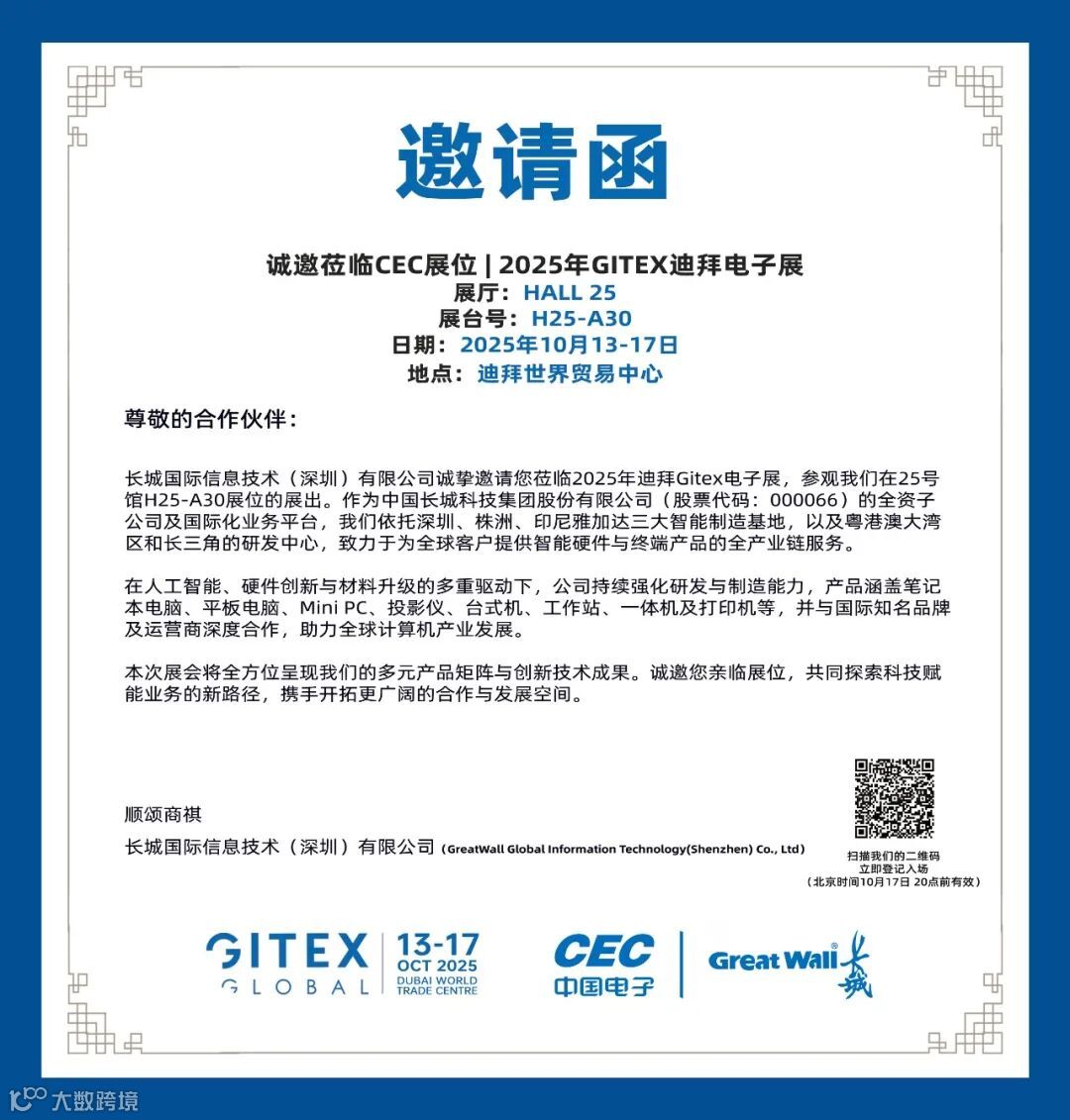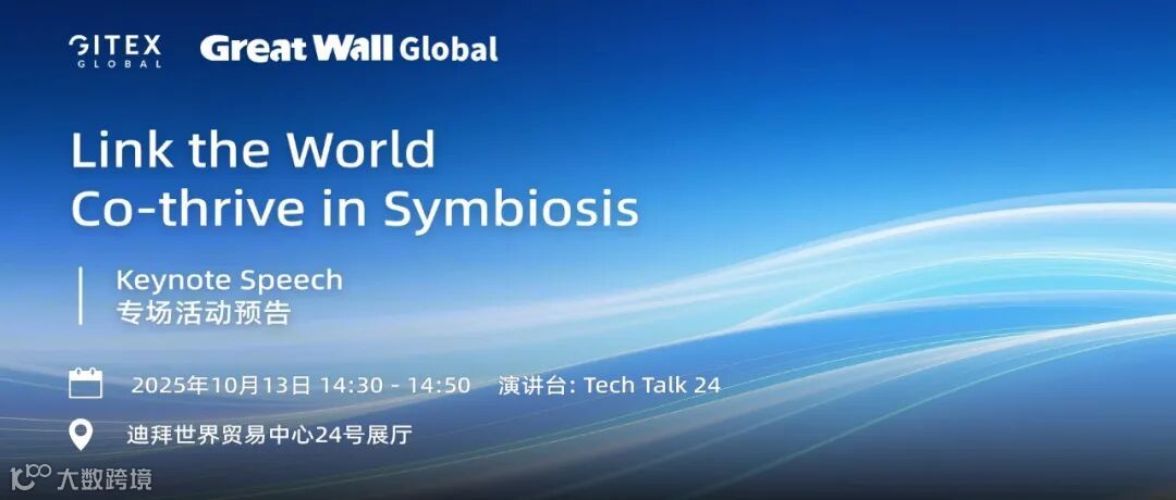 10月13-17日,GITEX GLOBAL 2025将在迪拜世界贸易中心盛大举行。作为中东及全球最具影响力的科技盛会之一,GITEX GLOBAL 汇聚了来自180多个国家和地区的顶尖科技企业与AI创新力量。