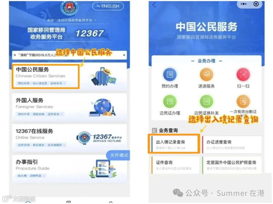 第一步:在微信小程序搜索“移民局”,进 入之后点击“中国公民服务”。