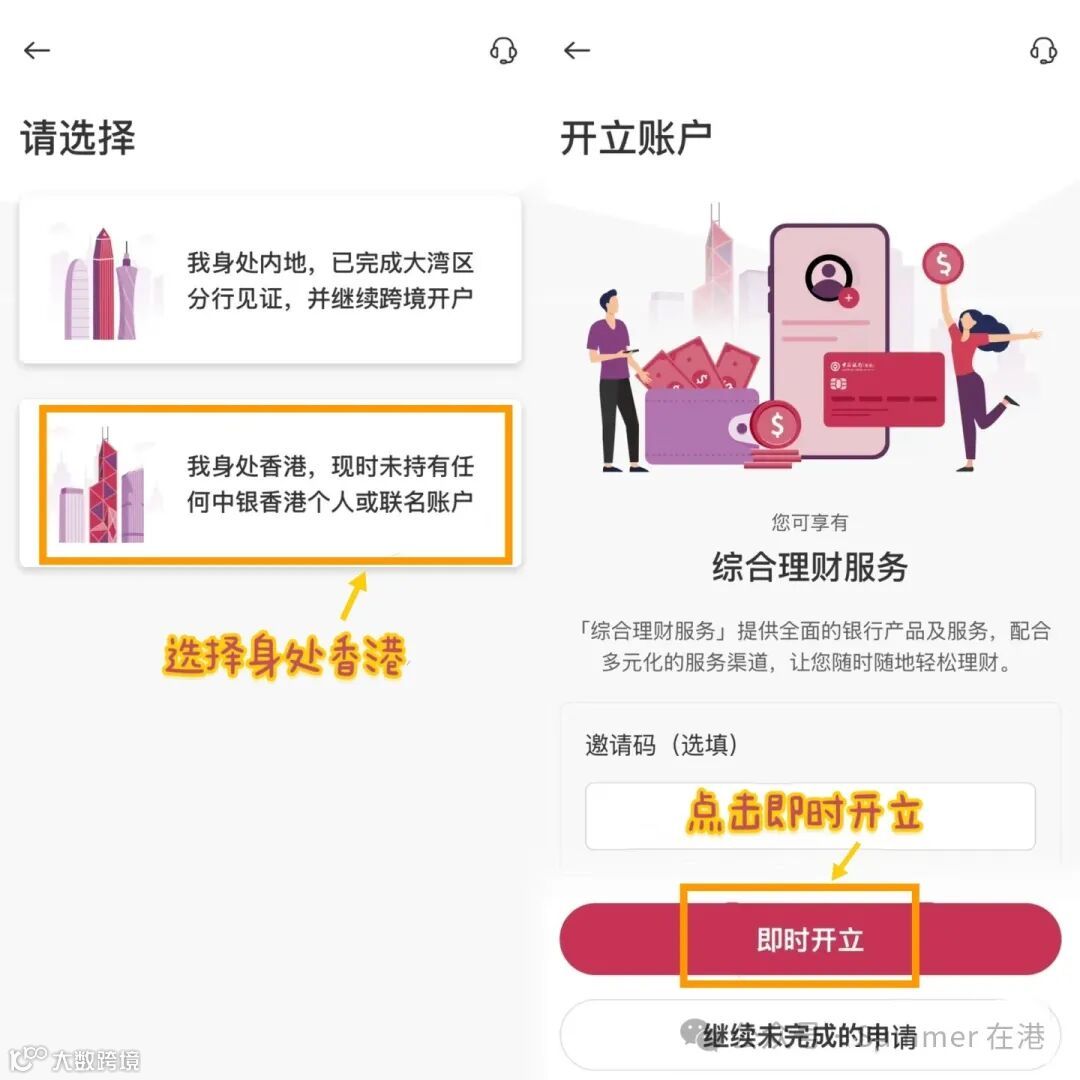 第四步:选择“我身处香港,现时未持有任何中银香港个人或联名账户”。
