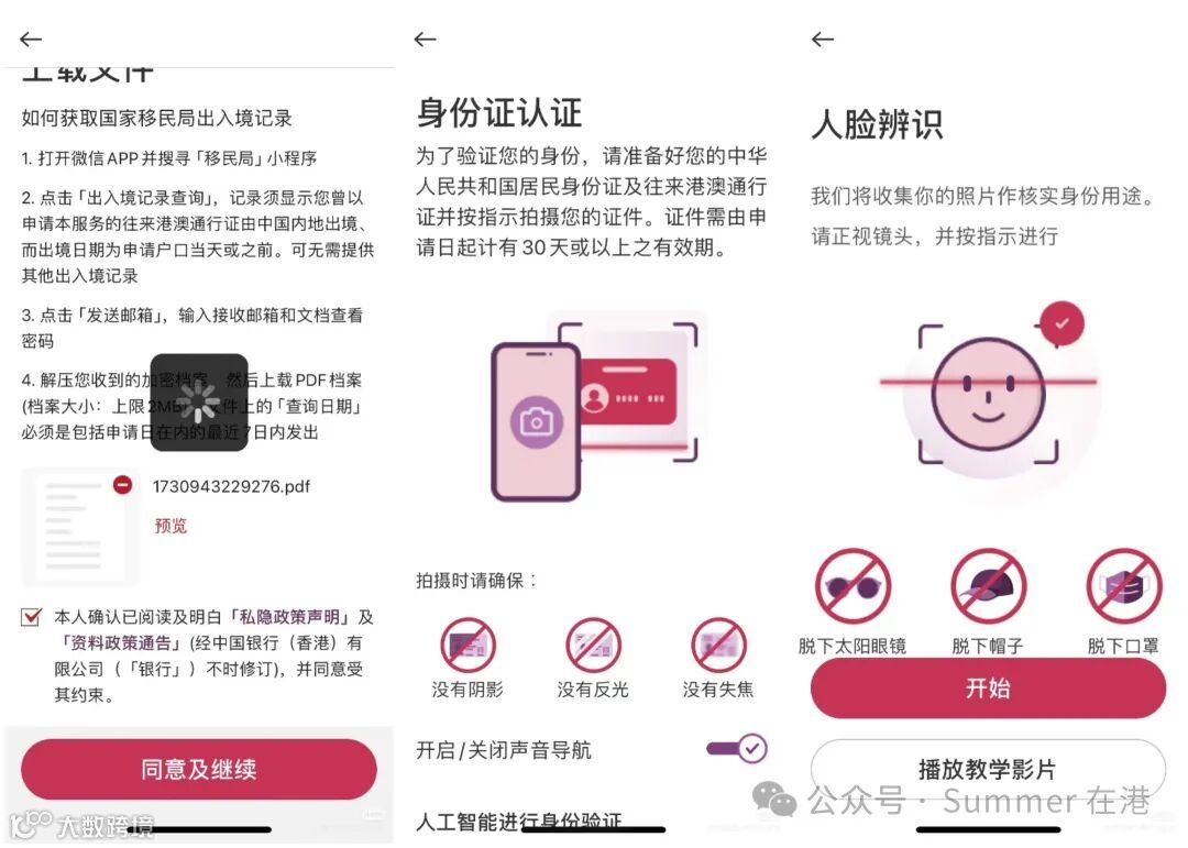 第八步:上传入境记录,身份证,港澳通行证,进行人脸识别身份验证。
