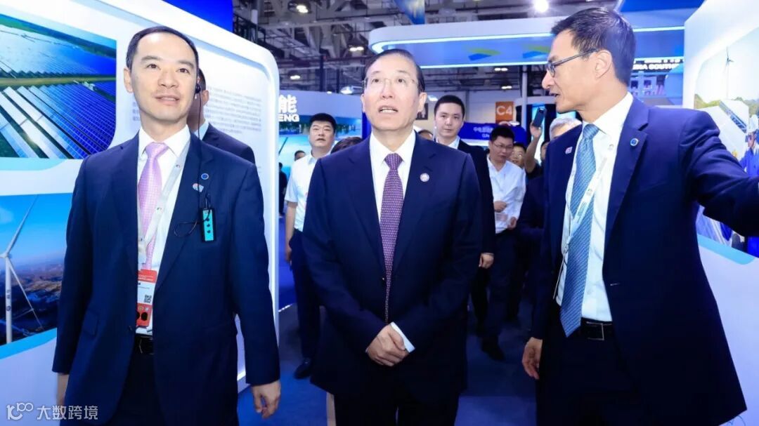 中华电力总裁罗嘉进先生(右)和中电中国区总裁陈涛先生(左)与东亚及西太平洋电力工业协会主席、中国电力企业联合会理事长、国家电网有限公司董事长、全球能源互联网发展合作组织主席辛保安先生合影,并参观中电展台。