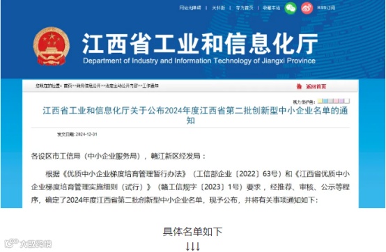 近日,江西省工业和信息化厅公布了 2024 年江西省第二批创新型中小企业认定名单,集团子公司江西博众数字科技有限公司荣耀上榜,荣获 “江西省创新型中小企业” 称号。