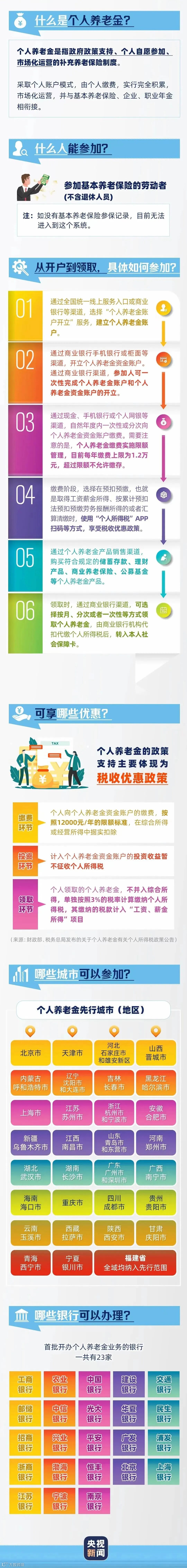 ,公布了36个先行城市(地区)名单,个人养老金制度开始在先行城市(地区)实施。