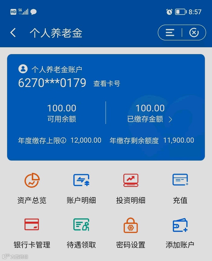 中国建设银行APP个人养老金账户界面