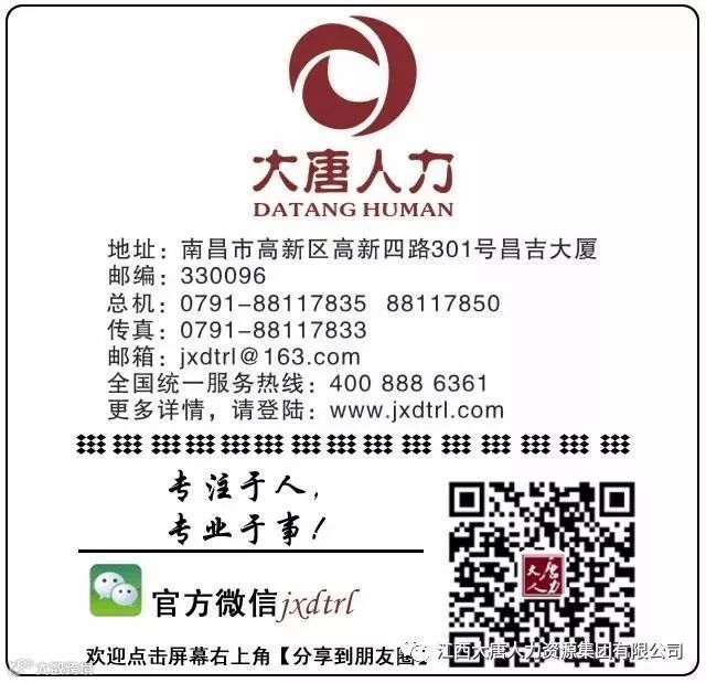 江西大唐人力资源集团(简称大唐人力集团)成立于2008年11月,总部位于南昌高新区。集团依托全省十一个地区的服务网络、先进的互联网平台和强大的IT技术,形成了四大业务体系:人力资源、档案服务、保安服务、产业园运营,为客户提供:人才派遣、人事服务、业务外包(岗位外包、窗口定制服务外包)、人才招聘(猎头)、人才培训、人才测评、管理咨询、薪税外包、校企合作、人力资源云服务平台;档案托管与加工;保安服务;现代服务产业园运营等服务产品