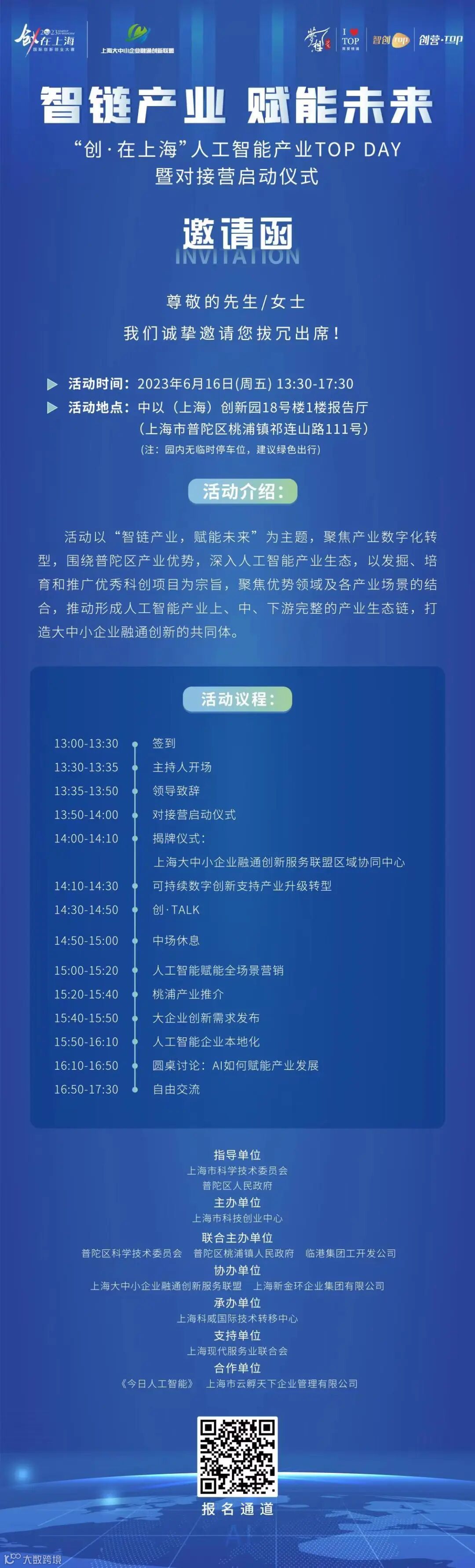活动预告丨智链产业,赋能未来--“创·在上海” 人工智能产业TOP Day暨对接营启动仪式诚邀莅临!