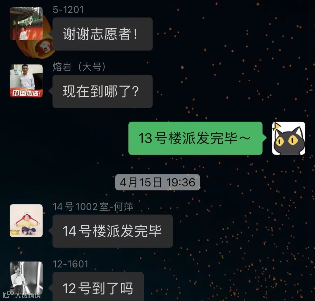 利用在工作中积累的组织与沟通能力,充分发动周边关系网络,多次联络、组织社区消杀物资、生活必需品采买、团购与分发;多次协助政府物资搬运及发放;关爱小区独居老人,帮助其参与生活必需品团购,解决独居老人的燃眉之急。