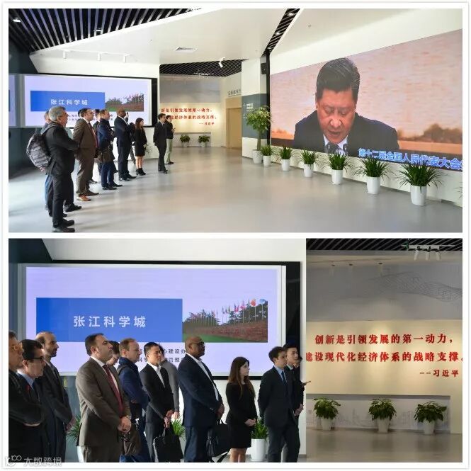4月12日上午,先是组织安排了各国外交官和代表参观张江国际创新创业服务平台,大致了解了张江高科技园区目前的发展建设情况和未来的规划蓝图。
