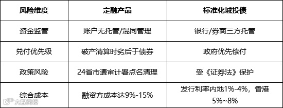 二、城投定融产品和标准化城投债的风险对比