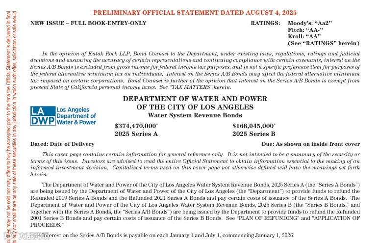 案例2:洛杉矶污水系统收益债(2025年)