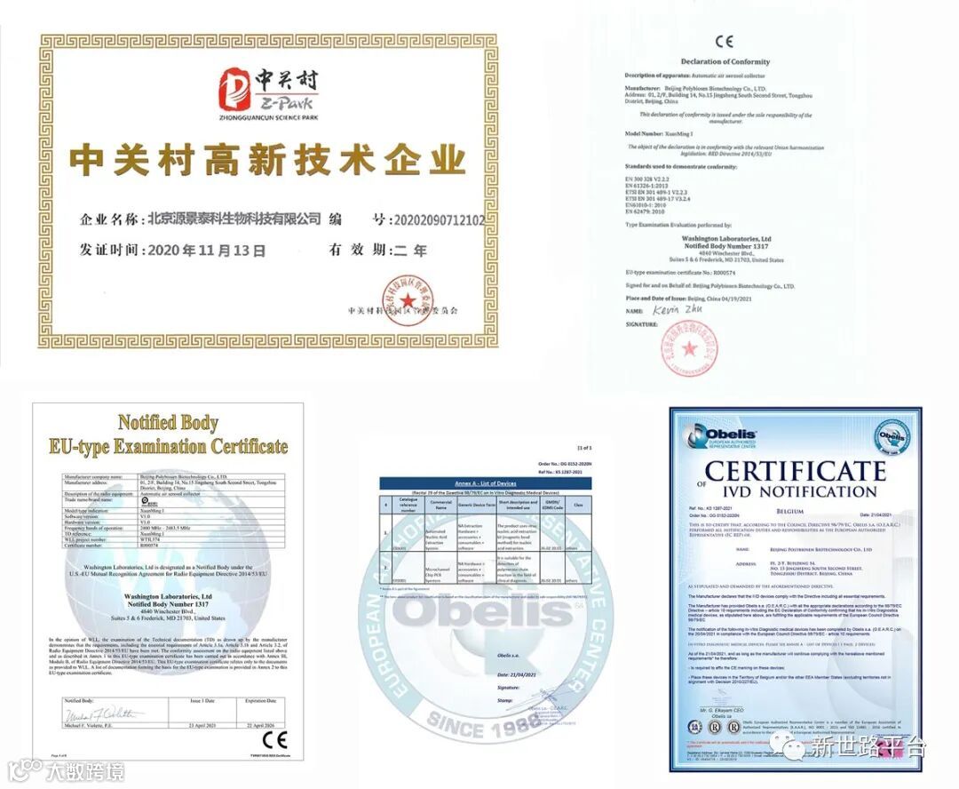 公司总建筑面积2000平方米,建成的试剂研发和质检实验室采用标准四区的PCR实验室设计,试剂生产厂房约1000平方米,含两个十万级和三个万级洁净区,配有多条自动化生产线,达到年产5000万人份诊断试剂的生产规模。设备生产厂房包括装配区、调试区、组装区、老化区和检测区,设备设计产能可达数千台套。公司发明专利20余项,产品已获得CE、FDA510K豁免等国际认证。