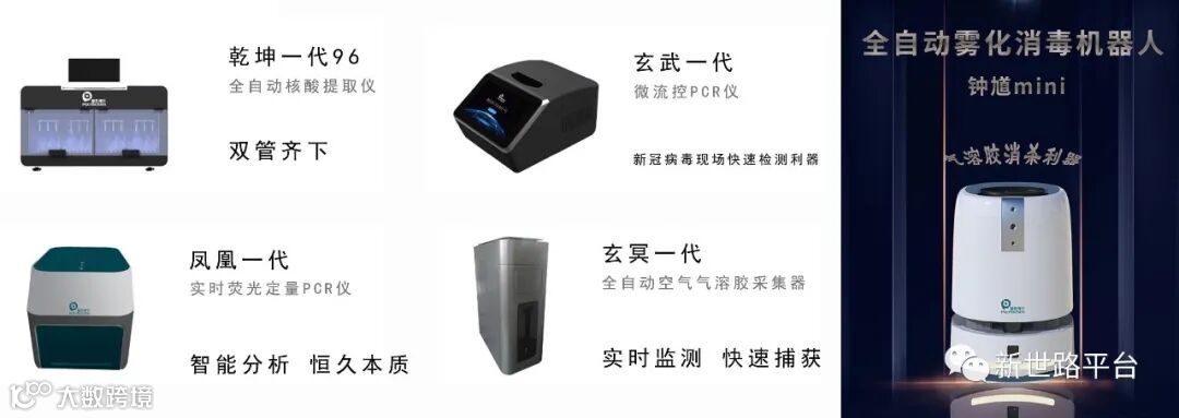 实验仪器:全自动核酸提取仪、荧光定量PCR仪、微流控PCR仪、雾化消毒机器人等。