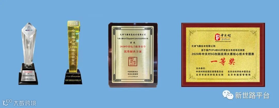 自成立以来,飞腾公司及核心产品、团队已荣获2020年中国IC设计成就奖之五大中国潜力IC设计公司、国家科学技术进步一等奖、“中国芯”优秀市场表现产品奖、中国电子信息博览会金奖、政府信息化产品技术创新奖、电子政务安全优秀解决方案奖、“中国青年五四奖章集体”等众多荣誉奖项。