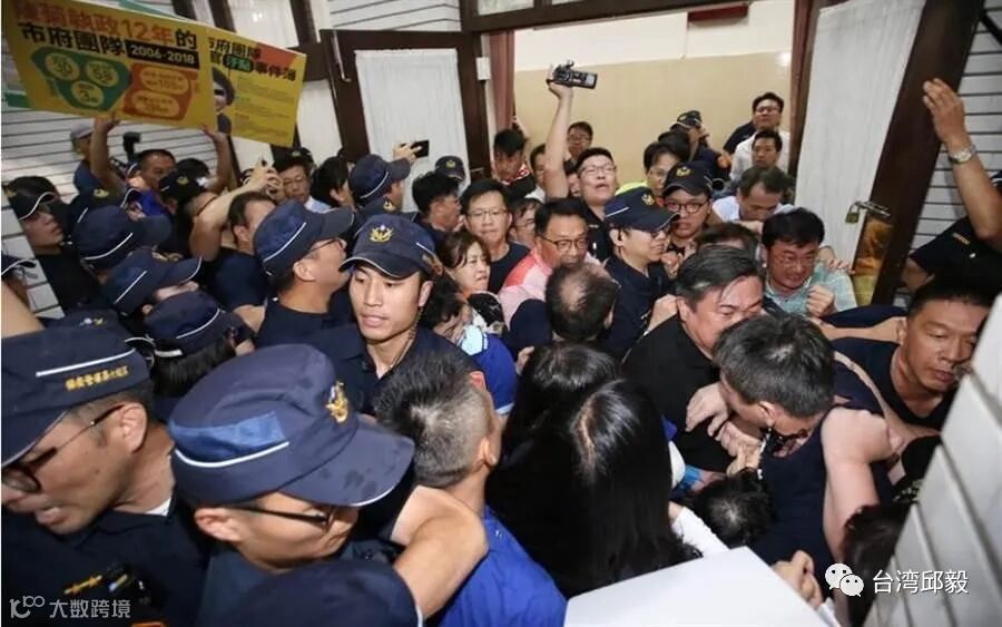 此外,零星“蓝委”成功突围,进入议场后,马上开始破坏备询台,有意杯葛不让陈菊上台备询,而民进党“立委”则在一旁高喊,“破坏公物啦!”、“现行犯!”
